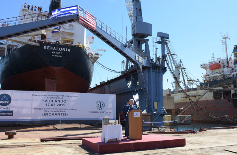 Την Κυριακή 17 Μαρτίου 2019, o Υπουργός Εθνικής Άμυνας Ευάγγελος Αποστολάκης μαζί με τον Αναπληρωτή Υπουργό Οικονομίας και Ανάπτυξης Στέργιο Πιτσιόρλα, εγκαινίασαν την ανακαινισμένη Panamax size δεξαμενή «ΒΙΟΛΑΝΤΩ» των Ναυπηγείων Νεωρίου Σύρου.