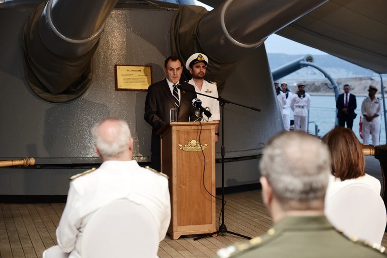 “Οι συμμετέχοντες στο κίνημα του Ναυτικού επέλεξαν το καθήκον βάσει αυτού που τους επέβαλε η δημοκρατική συνείδησή τους. Αυτό ακριβώς είναι το δίδαγμα, το οποίο πρέπει να κρατήσουμε σήμερα από τις εποχές εκείνες, όσο κι αν φαντάζουν μακρυνές. Σήμερα αποτίουμε φόρο τιμής σ’ όλους αυτούς, που σε δύσκολους καιρούς δεν δίστασαν να αγωνιστούν για το καλό της πατρίδας και την προάσπιση της δημοκρατίας. Ο αγώνας τους αποτελεί φωτεινό φάρο, τόσο για εμάς, όσο και για τις μελλοντικές γενιές”. Παράλληλα διαβεβαίωσε την Πρόεδρο της Δημοκρατίας ότι “η πίστη στο καθήκον είναι η επιταγή της Πολιτείας για τις Ένοπλες Δυνάμεις, οι οποίες είναι προσηλωμένες στην αποστολή τους, όπως καθορίζεται από το Σύνταγμα”.