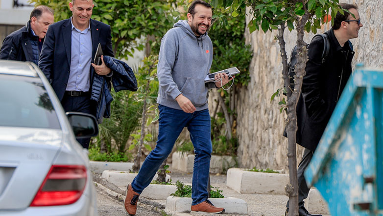 Ο Σωκράτης Φάμελλος έφτασε στο σπίτι του Στέφανου Κασσελάκη κρατώντας ένα κουτί γλυκά.