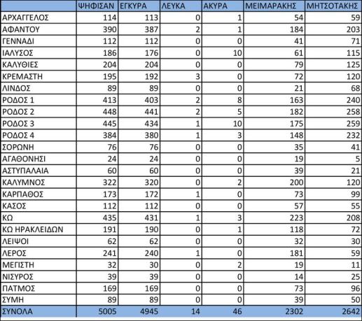 Εκλογές ΝΔ- Τα ανεπίσημα τελικά αποτελέσματα στα Δωδεκάνησα