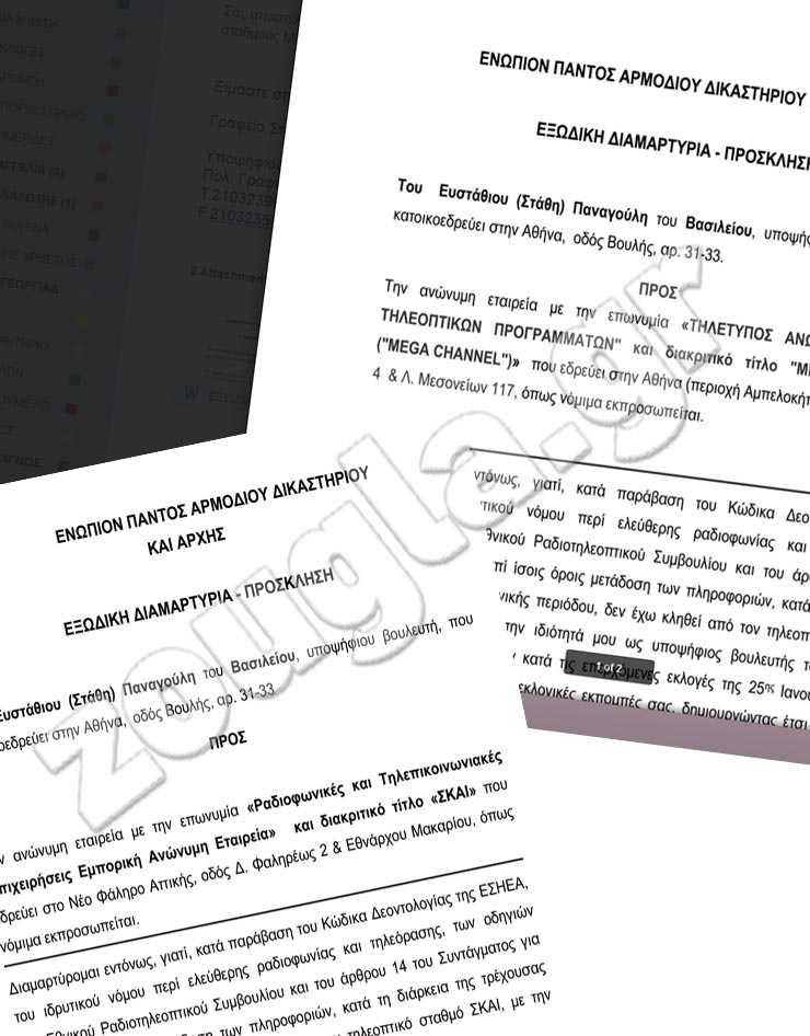 Στο εξώδικό του προς το Mega και τον ΣΚΑΪ ο Παναγούλης αναφέρει μεταξύ άλλων: