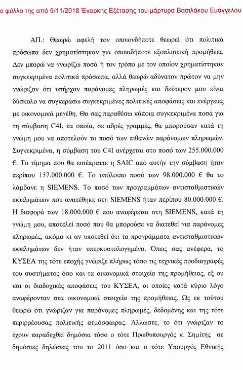 (C4i), καθώς και η κατάθεση του πρώην γεν. γραμματέα Εξοπλισμών Βαγγέλη Βασιλάκου ο οποίος εμπλέκει τον πρώην υπουργό και αναφέρεται και στον πρωθυπουργό Κώστα Σημίτη.