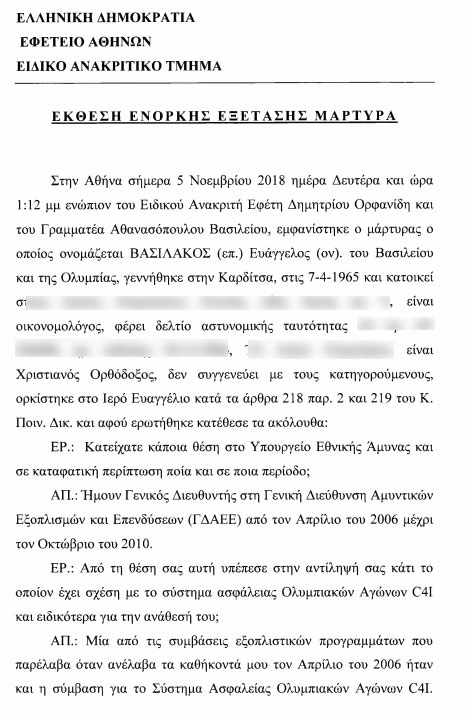 Η κατάθεση του πρώην γεν. γραμματέα Εξοπλισμών Βαγγέλη Βασιλάκου