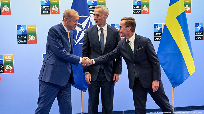 Αν και ο πρόεδρος Ερντογάν είχε συμφωνήσει κατ’ αρχήν με την ένταξη της Σουηδίας στο ΝΑΤΟ, συνεχίζει ακόμη να εμποδίζει την ολοκλήρωση της διαδικασίας. «Ο Ερντογάν εξακολουθεί να παίζει πόκερ με την ένταξη της Σουηδίας στο ΝΑΤΟ», σχολιάζει η Tagesspiegel. «Η Τουρκία θα δεχτεί τη Στοκχόλμη στη στρατιωτική συμμαχία μόνο εάν οι Η.Π.Α. στείλουν στην Τουρκία αεροσκάφη F-16, όπως δήλωσε ο Ερντογάν την Τρίτη, σύμφωνα με το Reuters.