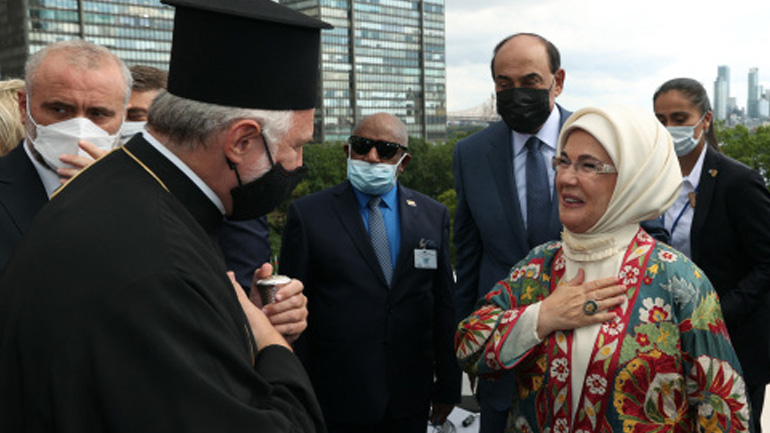 Μάλιστα ο κ Ελπιδοφόρος φαίνεται σε φωτογραφίες να συνομιλεί φιλικά με την σύζυγο του προέδρου της Τουρκίας, Εμινέ Ερντογάν.