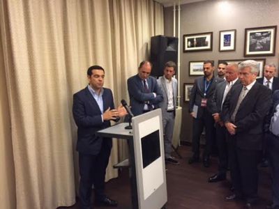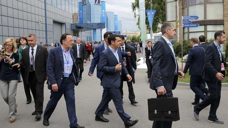 Ο Πρωθυπουργός Αλέξης Τσίπρας συνοδευόμενος από τον υπουργό Παραγωγικής Ανασυγκρότησης και Ενέργειας, Παναγιώτη Λαφαζάνη, στo πλαίσιο του Οικονομικού Φορουμ της Αγίας Πετρούπολης συναντήθηκαν με τον επικεφαλής της Gazprom Alexey Miller. Συζητησαν για ενεργειακά θέματα και το θέμα του αγωγού.