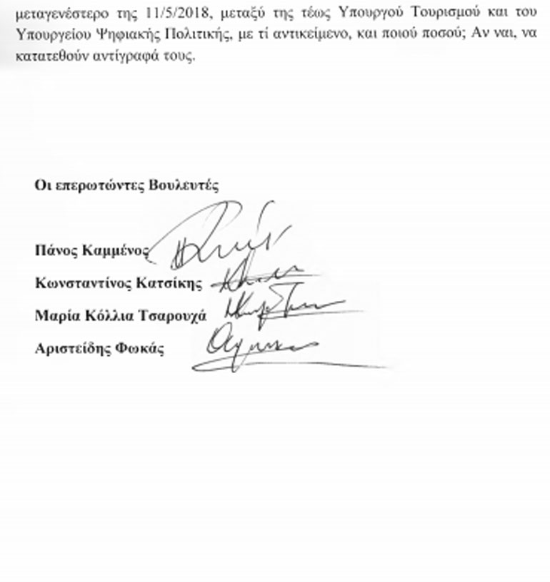Η ερώτηση με αίτηση κατάθεσης εγγράφων των ΑΝΕΛ προς τους υπουργούς Τουρισμού Θ. Θεοχαρόπουλο και Οικονομικών Ε. Τσακαλώτο αφορά στα κάτωθι: