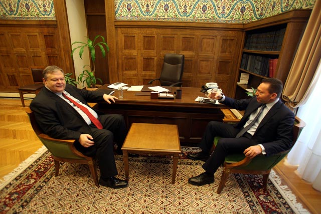 Ο Ευ. Βενιζέλος χαρακτήρισε περισσότερο συμβολική τη συνάντησή του και την ενημέρωση που είχε από τον υπουργό Οικονομικών, καθώς όλες τις προηγούμενες ημέρες είχε καθημερινή επικοινωνία με τους κ.κ. Σαμαρά και Στουρνάρα, όπως και με την κυπριακή πολιτειακή και πολιτική ηγεσία. Ο Πρόεδρος του ΠΑΣΟΚ χαρακτήρισε πολύ σημαντικό το γεγονός της «στεγανοποίησης» του ελληνικού τραπεζικού συστήματος, στο οποίο προσέβλεπαν οι Έλληνες καταθέτες και τόνισε ότι η σταθεροποίηση εντάσσεται στο πλαίσιο της σταθερότητας της ελληνικής οικονομίας που είναι προϋπόθεση για να πάμε σε θετικούς ρυθμούς ανάπτυξης.
