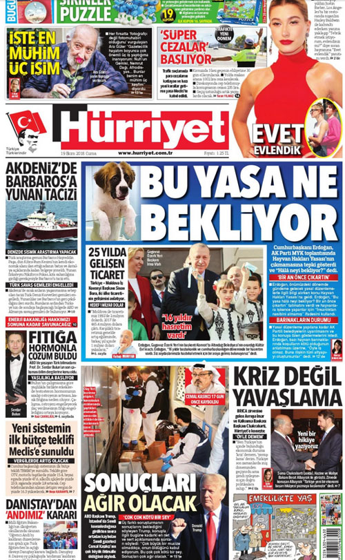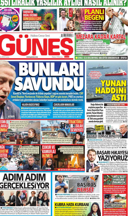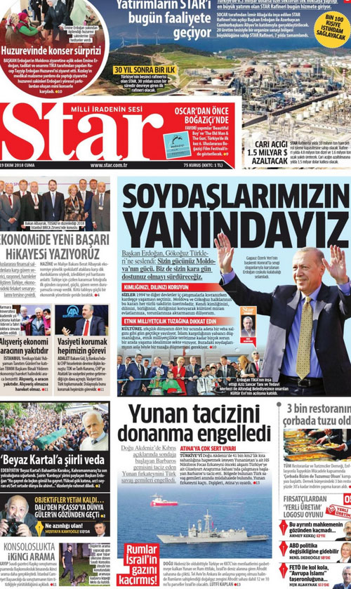 Tα τουρκικά ΜΜΕ από το μεσημέρι της Πέμπτης με τίτλους – κραυγές και πολεμοχαρή συνθήματα ανεβάζουν ιδιαίτερα τους τόνουςΜε δεδομένο ότι η συντριπτική πλειονότητα των τουρκικών ΜΜΕ ελέγχεται από την κυβέρνηση της χώρας, συμπεραίνεται πως η πολιτική «γραμμή» που εκφράζουν τα πρωτοσέλιδα των εφημερίδων αποτελεί μέρος της επικοινωνιακής τακτικής που έχει επιλέξει η Τουρκία σχετικά με το μείζον πρόβλημα που η ίδια αντιμετωπίζει με την άντληση του φυσικού αερίου στην Ανατολική Μεσόγειο.