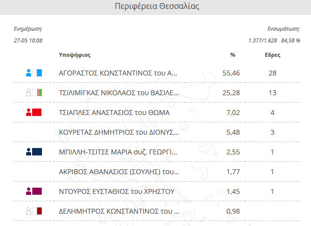 Δείτε τα αποτελέσματα σε ορισμένες από τις μεγαλύτερες Περιφέρειες: