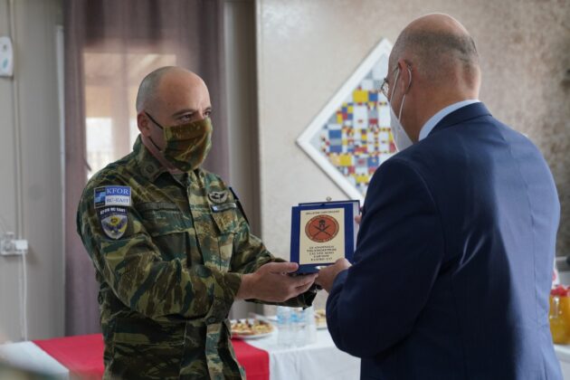 Ο υπουργός Εξωτερικών Νίκος Δένδιας, συνοδευόμενος από τον υφυπουργό Εξωτερικών Κώστα Φραγκογιάννη, επισκέφθηκε, την Παρασκευή 09 Οκτωβρίου 2020, την έδρα της Ελληνικής Δύναμης Κοσσυφοπεδίου στο στρατόπεδο Film City στην Πρίστινα.