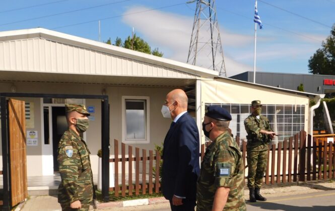 Ο υπουργός Εξωτερικών Νίκος Δένδιας, συνοδευόμενος από τον υφυπουργό Εξωτερικών Κώστα Φραγκογιάννη, επισκέφθηκε, την Παρασκευή 09 Οκτωβρίου 2020, την έδρα της Ελληνικής Δύναμης Κοσσυφοπεδίου στο στρατόπεδο Film City στην Πρίστινα.