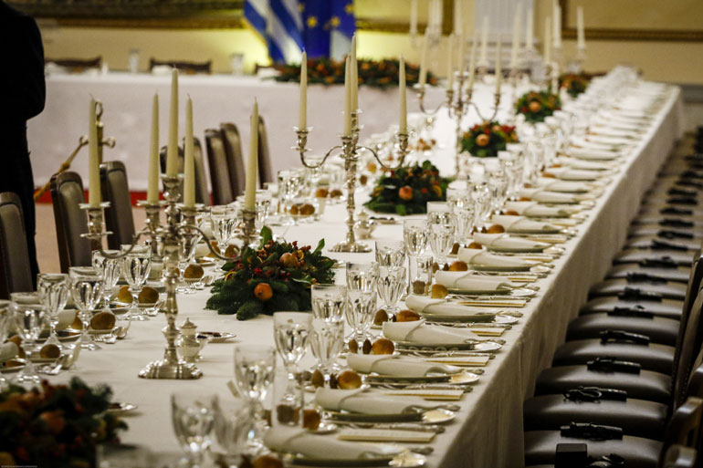 Εικόνες από το Προεδρικό Μέγαρο πριν την έναρξη του επίσημου γεύματος προς τιμήν του προέδρου της Τουρκίας, Ταγίπ Ερντογάν και της συζύγου: