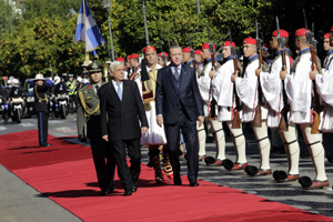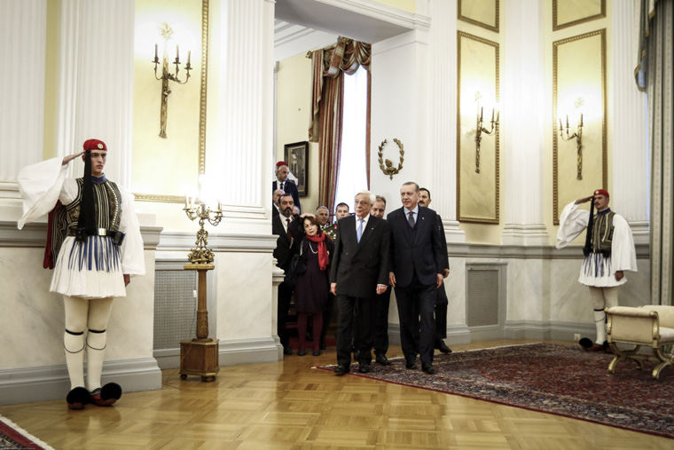 Σε ένα κλίμα πολιτικής αμηχανίας και επιφυλακτικότητας άρχισαν οι συνομιλίες στην Αθήνα του προέδρου της Τουρκίας Ταγίπ Ερντογάν με τον Πρόεδρο της Δημοκρατίας Προκόπη Παυλόπουλου και τον πρωθυπουργό Αλέξη Τσίπρα.