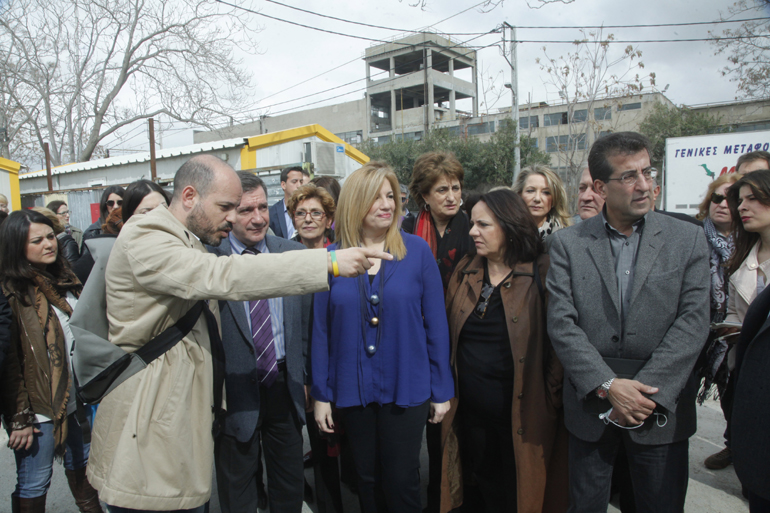 Τη δυνατότητα να δει από κοντά τις εγκαταστάσεις στο κέντρο φιλοξενίας προσφύγων στον Ελαιώνα είχε η Φώφη Γεννηματά. Η πρόεδρος του ΠΑΣΟΚ έγινε δεκτή από τον δήμαρχο Αθηναίων Γιώργο Καμίνη, ο οποίος και την ξενάγησε στους χώρους. Στις εγκαταστάσεις αυτές φιλοξενούνται μεταξύ άλλων γυναίκες και παιδιά.