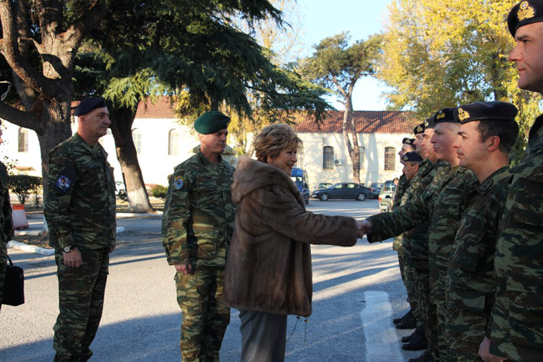 Η κα Κόλλια Τσαρουχά εξήρε το έργο των στελεχών -μονίμων και στρατευσίμων- των ακριτικών μονάδων προς την πατρίδα και το κοινωνικό σύνολο.
