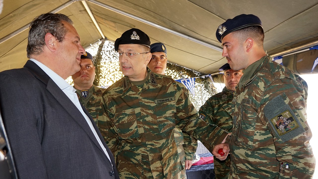 Ο Υπουργός Εθνικής Άμυνας Πάνος Καμμένος, συνοδευόμενος από τον Αρχηγό ΓΕΣ Αντιστράτηγο Αλκιβιάδη Στεφανή, επισκέφθηκε τα Φυλάκια Παναγιάς Οινουσσών και Φαρμακονησίου και αντάλλαξε ευχές για την εορτή του Πάσχα με τους αξιωματικούς, τους υπαξιωματικούς και τους οπλίτες.