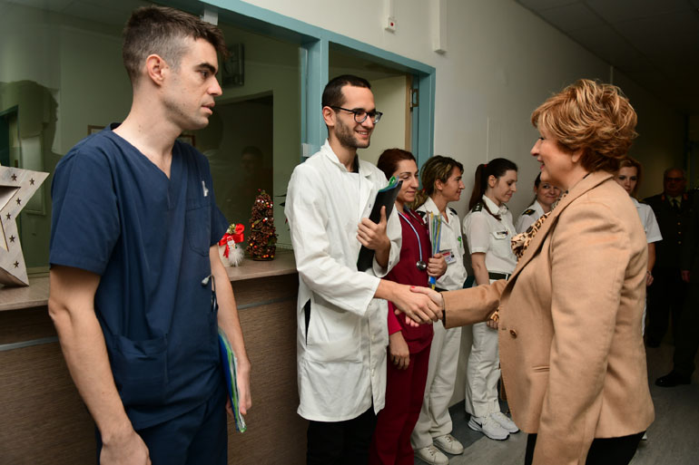 Κατά την επίσκεψη της στα νοσηλευτικά ιδρύματα, η ΥΦΕΘΑ ευχήθηκε στους ασθενείς ταχεία ανάρρωση, καλές γιορτές και γρήγορη επιστροφή στις οικογένειές τους.