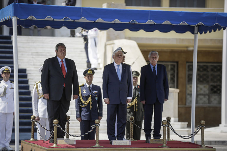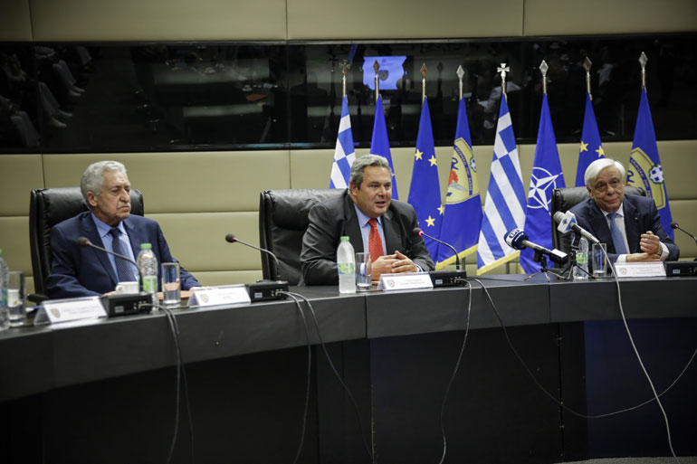 Ο υπουργός Εθνικής Άμυνας, Πάνος Καμμένος, στον χαιρετισμό του προς τον ΠτΔ τόνισε :«Μας δίνετε δύναμη να συνεχίσουμε το έργο της προάσπισης της εθνικής κυριαρχίας και της εδαφικής ακεραιότητας της χώρα» ενώ υπογράμμισε πως είναι ο ίσως ο μοναδικός ΠτΔ που έχει επισκεφθεί τις μονάδες όλων των σωμάτων και έχει διανυκτερεύσει σε πλοίο του Πολεμικού Ναυτικού.