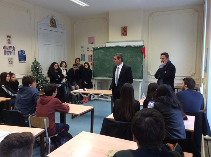 Εν συνεχεία ο ΥΠΑΙΘ επισκέφθηκε το Βελγικό σχολείο Μater Dei όπου υπάρχει τμήμα ελληνικής γλώσσας και συζήτησε με τους μικρούς μαθητές.