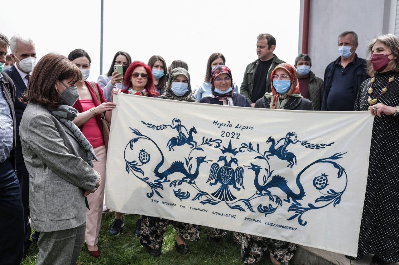 Το Μικρό Δέρειο, το Μεγάλο Δέρειο του νομού Έβρου και το Θρυλόριο του νομού Ροδόπης επισκέφθηκε η Πρόεδρος της Δημοκρατίας Κατερίνα Σακελλαροπούλου το πρωί της δεύτερης μέρας της τετραήμερης περιοδείας της στη Θράκη.