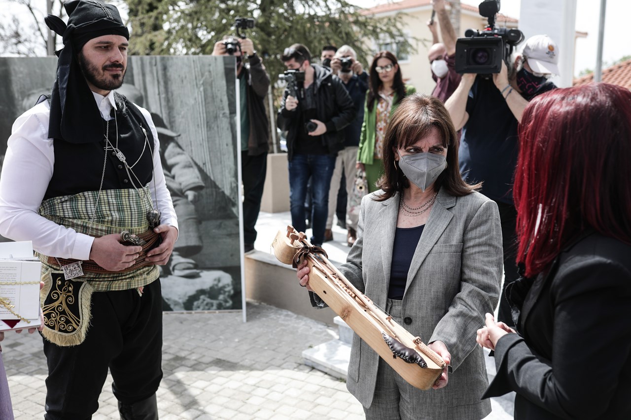 Οι κάτοικοι πρόσφεραν στην Πρόεδρο της Δημοκρατίας μία ποντιακή λύρα και αντάλλαξαν ευχές για το Πάσχα.