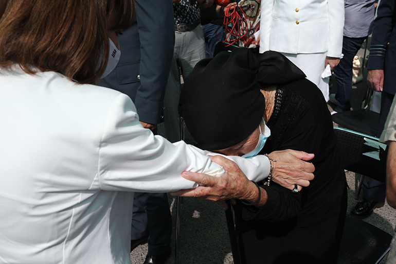 Η κα Σακελλαροπούλου, συγκινημένη, έκανε αναφορά στις γυναίκες που έδωσαν τη μάχη και κράτησαν όπως τόνισε «ζωντανή τη μνήμη της συμφοράς αλλά και της αντίστασης στη ναζιστική θηριωδία» χαρακτηρίζοντας το θάρρος τους, «παράδειγμα υπομονής και εγκαρτέρησης, πρότυπα ζωής που μας καλούν να μην ξεχάσουμε, να μην εφησυχάσουμε, να εναντιωθούμε σε κάθε απόπειρα επανεμφάνισης τέτοιων αποτρόπαιων φαινομένων».