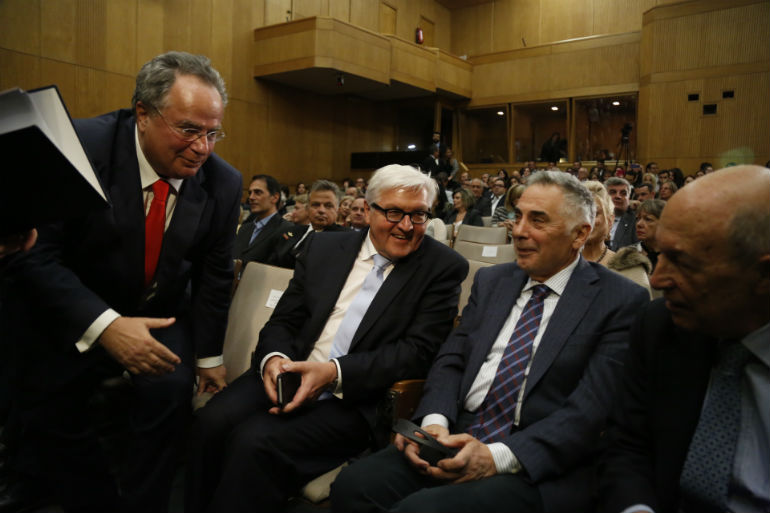 Ο κ. Σταϊνμάγερ έκανε μία αναφορά στη δεκαετία του ’70 και στη γνωριμία του με τον Έλληνα ομόλογό του, τον οποίο συνεχάρη για τη διδασκαλία και την εργασία του στο Πανεπιστήμιο Πειραιά, καθώς και για την οργανωτικότητά του, τονίζοντας ότι ο Νίκος Κοτζιάς διακρινόταν ως «αγωνιστής της ελεύθερης γνώμης τόσο στην Ελλάδα όσο και στη Γερμανία».