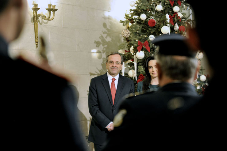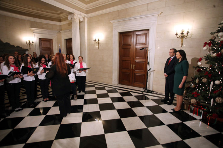 Τα χριστουγεννιάτικα κάλαντα άκουσε ο πρωθυπουργός Αντώνης Σαμαράς με τη σύζυγό του στο Μέγαρο Μαξίμου.