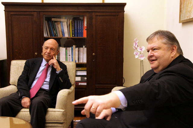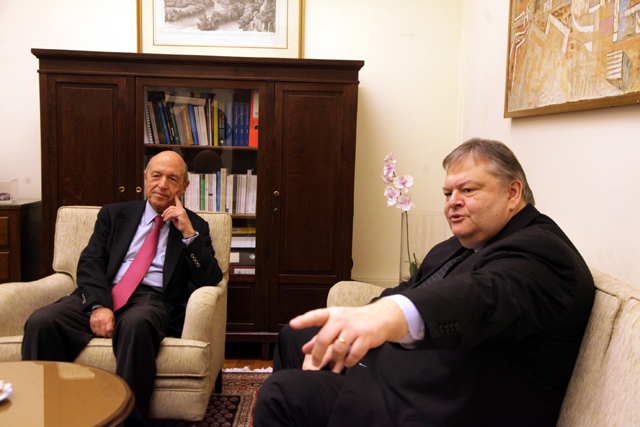 Ο κ. Βενιζέλος φάνηκε ιδιαίτερα ικανοποιημένος από το αποτέλεσμα της συζήτησης με τον κ. Σημίτη εν αντιθέσει με το χθεσινό τετ α τετ με τον Γιώργο Παπανδρέου.