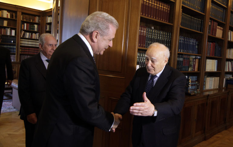«Υπήρξατε ένας από τους σταθερότερους παράγοντες ασφάλειας για τη χώρα, για την κοινωνική μας γαλήνη, για την πολιτική και εθνική μας συνεννόηση, και μάλιστα σε ιδιαίτερα δύσκολες στιγμές» είπε ο Έλληνας επίτροπος και πρόσθεσε: «Πάντοτε έχοντας κατά νου αυτό που και εσείς διδάξατε και υπηρετήσατε, και εγώ έχω κομμάτι της συνείδησής μου ότι πρέπει να προασπίζουμε και να ενισχύουμε την εθνική μας συνοχή, τη λαϊκή και εθνική ενότητα, ιδιαίτερα απαραίτητα στοιχεία για να ξεπεράσουμε τις δυσκολίες και να πορευθούμε με αισιοδοξία».
