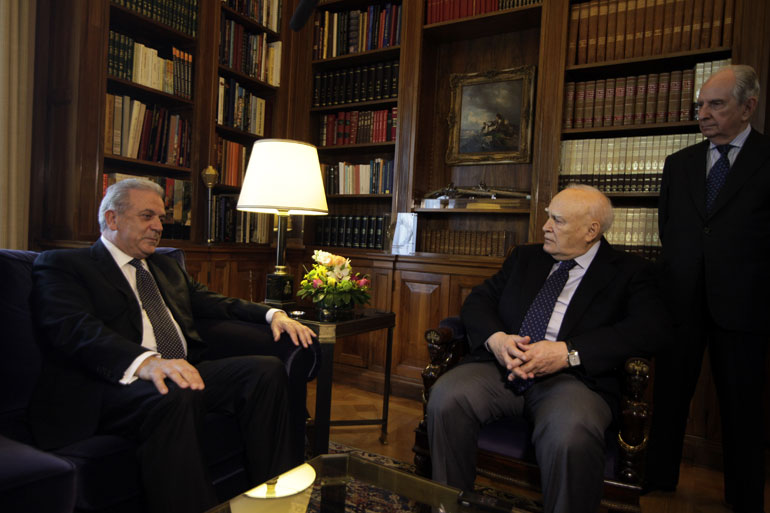 Ο κ. Αβραμόπουλος εκθείασε τον Πρόεδρο και τον ευχαρίστησε γιατί «όλο αυτό τον καιρό αισθάνθηκα τη στήριξη, την εμπιστοσύνη, αλλά -σε πολλές περιπτώσεις- και τη σοφία των συμβουλών σας, ιδιαίτερα για την περίοδο που ήμουν στα υπουργεία Εξωτερικών και Άμυνας».