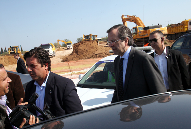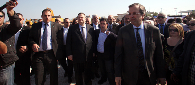 Με την κοινή παρουσία του πρωθυπουργού Αντώνη Σαμαρά, του προέδρου του ΠΑΣΟΚ Ευάγγελου Βενιζέλου και εκπροσώπου της ΔΗΜΑΡ, πραγματοποιείται επιθεώρηση της επανέναρξης των έργων της εθνικής οδού Αθηνών – Πατρών, στην περιοχή του Ζευγολατιού Κορινθίας.