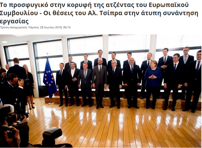«Η κα Μέρκελ δέχεται έντονη πίεση από τους εταίρους του συντηρητικού συνασπισμού της Βαυαρίας (σ.σ.: το CSU του υπουργού Εσωτερικών Χορστ Ζεεχόφερ) για να πείσει τις κυβερνήσεις να επιταχύνουν τις διαδικασίες επιστροφής για αιτούντες άσυλο που είναι ήδη εγγεγραμμένοι σε άλλες χώρες της Ε.Ε. Απειλούν να διαλύσουν τον συνασπισμό, εάν δεν καταφέρει να το επιτύχει έως το τέλος αυτού του μήνα. Δεν μας ενδιαφέρει το γεγονός ότι ίσως θα έχουμε κάποιες επιστροφές από τη Γερμανία αν αυτό βοηθήσει, ώστε να δοθεί το σήμα στους παράνομους διακινητές (ότι η Ευρώπη αντιμετωπίζει τις παράτυπες μεταναστευτικές ροές» είπε ο Αλέξης Τσίπρας.