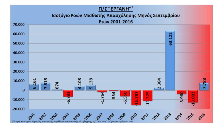 II. Όπως είπε ο κ. Βρούτσης, τα στοιχεία του συστήματος «ΕΡΓΑΝΗ», για το ισοζύγιο των ροών μισθωτής απασχόλησης μηνός Σεπτεμβρίου 2016, είναι εξίσου αποκαλυπτικά.