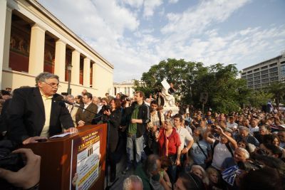Νέα διάσταση έλαβε από το βράδυ της Τρίτης το Αντιμνημονιακό Μέτωπο με την παρέμβαση του Μίκη Θεοδωράκη και των Πανεπιστημιακών.