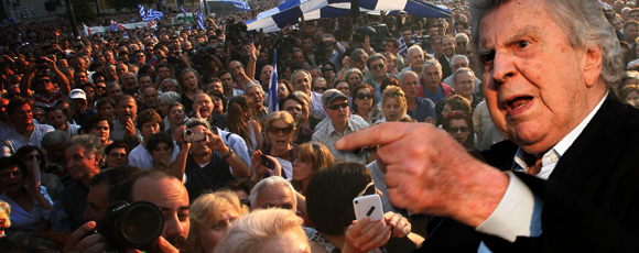 Ο Μίκης Θεοδωράκης με το σύνθημα «Δεν ανήκουμε στην Δύση αλλά στον εαυτό μας και τον λαό μας» προσανατόλισε σαφώς την πολιτική του παρέμβαση. «Το πολιτικό σύστημα καταρρέει. Αν οι Έλληνες ξεσηκωθούν τότε θα εκδιώξουν όλα τα καθάρματα που οδήγησαν την χώρα στον κόπρο του Αυγείου». Ο Μίκης Θεοδωράκης καταφέρθηκε κατά του Προέδρου της Δημοκρατίας διότι έπεσε στην παγίδα του Γιώργου Παπανδρέου και κατήγγειλε πώς όλες οι κυβερνήσεις από το 1990 και μετά ευθύνονται για την σημερινή κατάσταση.