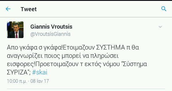 Μέσω του προσωπικού του λογαριασμού στο Twitter, ο πρώην υπουργός Εργασίας έγραψε: