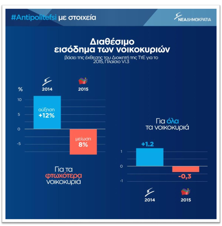 Η φετινή έκθεση του διοικητή της Τράπεζας της Ελλάδος (ΤτΕ), υπήρξε κόλαφος για την κυβέρνηση ΣΥΡΙΖΑ-ΑΝΕΛ! Τα στοιχεία της επιβεβαιώνουν την αύξηση – ρεκόρ – της φτώχειας και των ανισοτήτων, που έφερε ο ΣΥΡΙΖΑ το 2015. Κι αυτό, σε αντίθεση με το 2014, που για πρώτη φορά μετά από τέσσερα χρόνια το εισόδημα αυξήθηκε και η φτώχεια μειώθηκε. Ειδικά στα χαμηλά εισοδήματα η συνολική απόκλιση για τα έτη 2014-2015 άγγιξε το 20%! Συμπέρασμα, ΣΥΡΙΖΑ= φτώχεια!