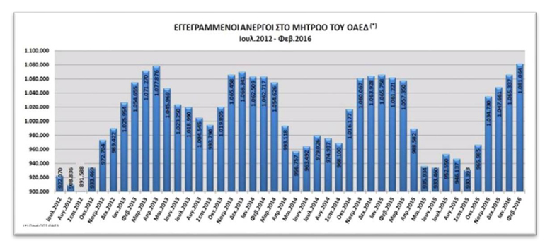 Ιστορικό Ρεκόρ Ανεργίας ΟΑΕΔ. Οι εγγεγραμμένοι άνεργοι το μήνα Φεβρουάριο 2016 έφτασαν το 1.081.064! Πρόκειται για τη χειρότερη επίδοση όλων των εποχών. Επίδοση που φέρει την υπογραφή ΣΥΡΙΖΑ-ΑΝΕΛ.