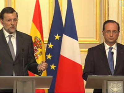 Στο ίδιο μήκος κύματος, με την Άγκελα Μέρκελ κινήθηκε και ο Ισπανός πρωθυπουργός Μαριάνο Ραχόι, σε δηλώσεις του στην κοινή συνέντευξη Τύπου που παραχώρησε με τον Γάλλο πρόεδρο Φρανσουά Ολάντ στο Παρίσι, λίγες μόλις ώρες πριν την έναρξη της άτυπης Συνόδου Κορυφής στις Βρυξέλλες. Ο κ. Ραχόι δήλωσε πως τώρα δεν είναι η κατάλληλη στιγμή να ανοίξει το ζήτημα των ευρωομολόγων.
