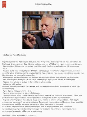 Δεν αλλάζεις, βέβαια, και την ψήφο του Ελληνικού Λαού, στις εκλογές της 25 Ιανουαρίου 2015.