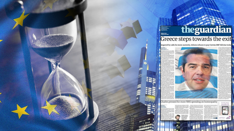 Την ώρα που οι διαπραγματεύσεις Αθήνας και δανειστών βρίσκονται σε σημείο καμπής, με στελέχη του ΣΥΡΙΖΑ να ζητούν ανοικτά ρήξη ή προσφυγή στις κάλπες, πρωτοσέλιδο δημοσίευμα του Guardian εκτιμά ότι η Ελλάδα βρίσκεται πολύ κοντά στην έξοδο«Η Ελλάδα οδεύει κατευθείαν προς την έξοδο» τιτλοφορείται το σχετικό ρεπορτάζ του Guardian που αναφέρει ότι η κυβέρνηση «είπε προς το ΔΝΤ ότι δεν θα μπορέσει να αποπληρώσει τη σημερινή δόση των 300 εκατ. ευρώ».