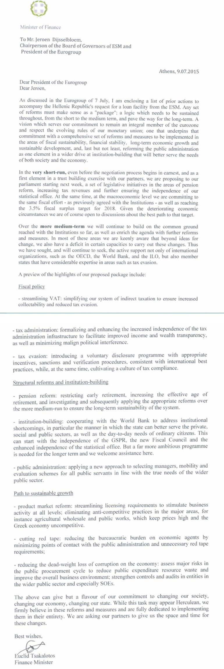 Τη μονοσέλιδη επιστολή του πρωθυπουργού Αλέξη Τσίπρα και τη δισέλιδη επιστολή του ΥΠΟΙΚ Ευκλείδη Τσακαλώτου που συνοδεύουν το ελληνικό αίτημα για 3ετές δάνειο και για τα μέτρα που θα εφαρμοστούν αποκαλύπτουν οι FT.
