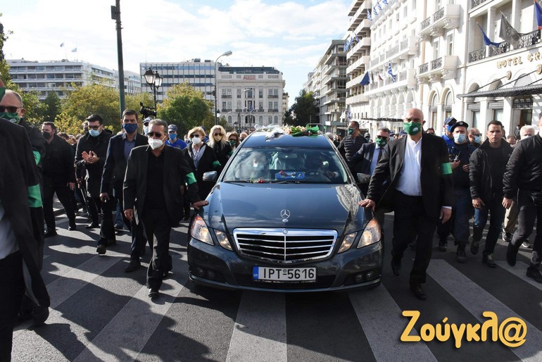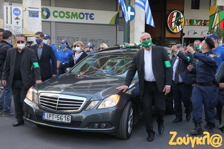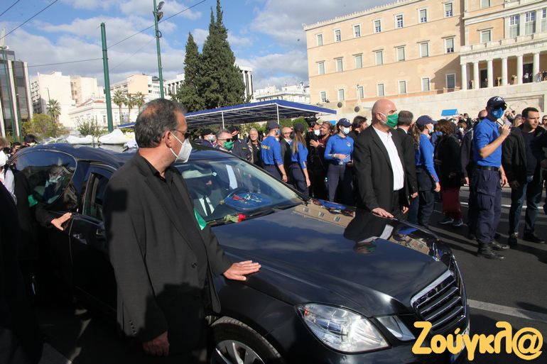 Λίγο μετά τις 3.30 ακολούθησε η πομπή παρουσία πλήθους κόσμου, με μία ολιγόλεπτη στάση μπροστά από τη Βουλή, στο μνημείο του Αγνώστου Στρατιώτη, προς το Α’ νεκροταφείο Αθηνών όπου και πραγματοποιήθηκε ο ενταφιασμός.