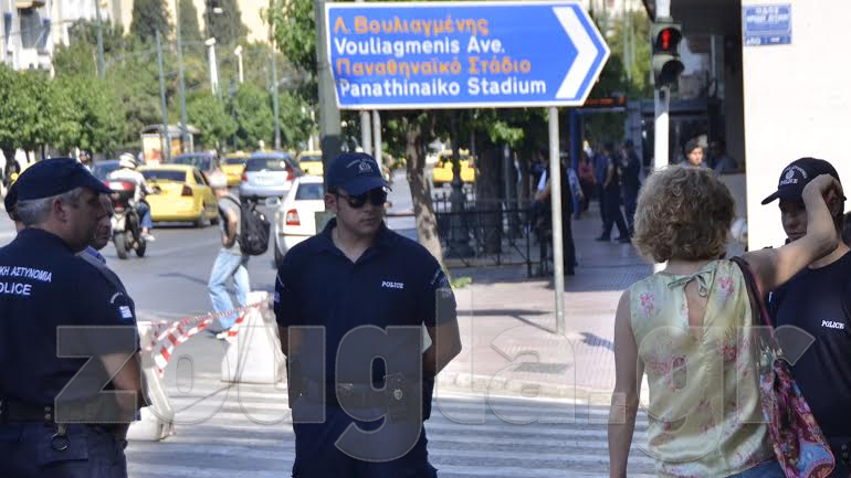 Δεν περνάει… κουνούπι από την Ηρώδου Αττικού όπου σε λίγη ώρα αναμένεται η άφιξη του Ρώσου Προέδρου Βλαντίμιρ Πούτιν.