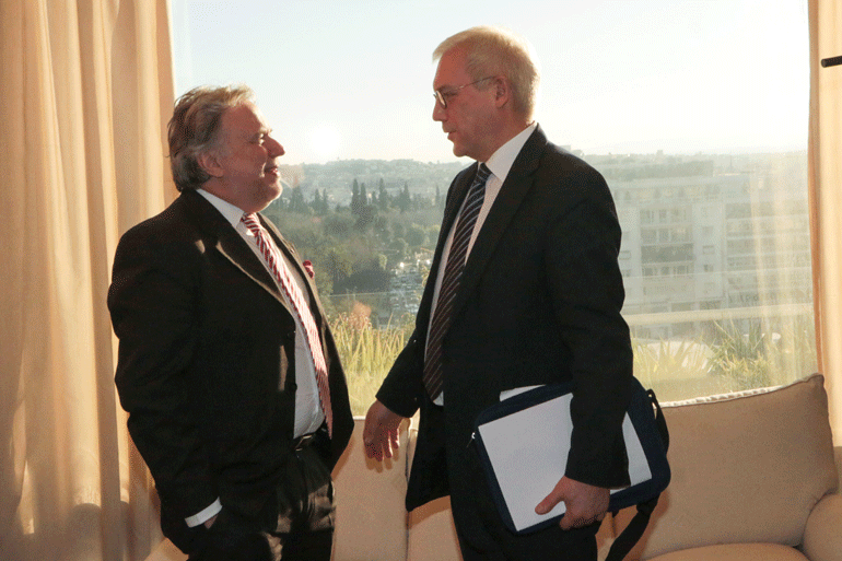 Το μήνυμα πως «οι απόψεις της Ρωσίας και της Ελλάδας ως προς την κατεύθυνση σταθεροποίησης και σταθερότητας στην περιοχή είναι είτε είναι πολύ κοντά είτε ταυτίζονται», έστειλε, από τη μεριά του, ο υφυπουργός Εξωτερικών της Ρωσίας, Αλεξάντερ Γκρούσκο. «Εμείς έχουμε ίδιες προσεγγίσεις ως προς ότι αυτή η ευρύτερη περιοχή δεν πρέπει να γίνει αρένα των αντιπαραθέσεων» κατέστησε σαφές ο κ. Γκρούσκο.