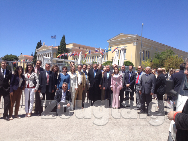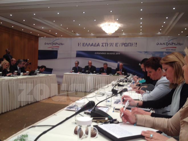 Μετά την ολοκλήρωση της διακαναλικής συνέντευξης, τα στελέχη των Ανεξάρτητων Ελλήνων, παρουσία του προέδρου τους Πάνου Καμμένου, φωτογραφήθηκαν μπροστά στο Ζάππειο.