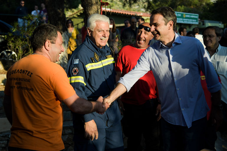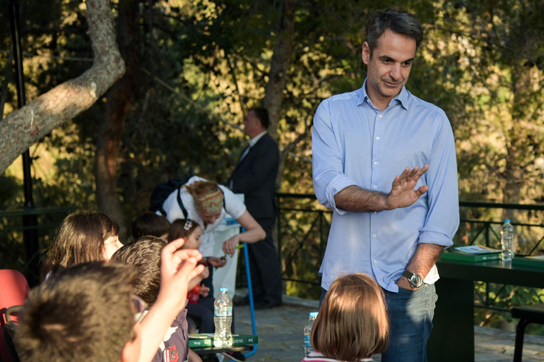 Ο πρόεδρος της ΝΔ αρχικά συνομίλησε με τα παιδιά για την αξία του δάσους, τους κινδύνους πυρκαγιάς και πλημμύρας και την ανάγκη προστασίας του και ακολούθως άκουσε τους προβληματισμούς των εθελοντών δασοπυροσβεστών για τις πρωτοβουλίες, που θα έπρεπε να ληφθούν ώστε το έργο της πρόληψης και καταστολής των πυρκαγιών να γίνει αποτελεσματικότερο. Οι δασοπυροσβέστες του μίλησαν για τη δυσκολία πρόσβασης στους τόπους των συμβάντων, λόγω έλλειψης δρόμων, αλλά και για τα κίνητρα που θα έπρεπε να δοθούν από την πολιτεία, ώστε να εμπλουτιστεί το σώμα των εθελοντών. «Εμείς πιστεύουμε ότι για τη φωτιά στο δάσος -αν δεν πρόκειται για κεραυνό- ευθύνεται ο άνθρωπος. Γι αυτό και το θέμα της προσοχής και πρόληψης είναι κρίσιμο» είπαν στον κ. Μητσοτάκη κι εκείνος τους διαβεβαίωσε ότι, «ως κυβέρνηση η ΝΔ με αίσθημα ευθύνης θα πράξει το καλύτερο δυνατό στον συγκεκριμένο τομέα». Πρόσθεσε, ωστόσο: «Πρέπει να σας υπενθυμίσω ότι με τη βούληση του ελληνικού λαού, εμείς θα αναλάβουμε τα πράγματα από τη μέση. Με την αλλαγή σκυτάλης, θα χρειαστούμε κάποιο χρόνο για αντικατάσταση των δομών. Δεν θα μπορέσουμε να κάνουμε άμεσες παρεμβάσεις. Έργο θα μπορέσουμε να προσφέρουμε, ουσιαστικά από τον Οκτώβριο».