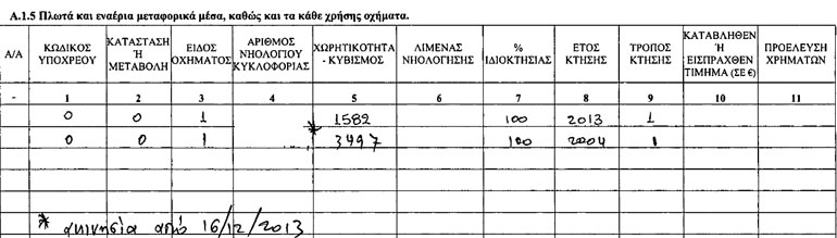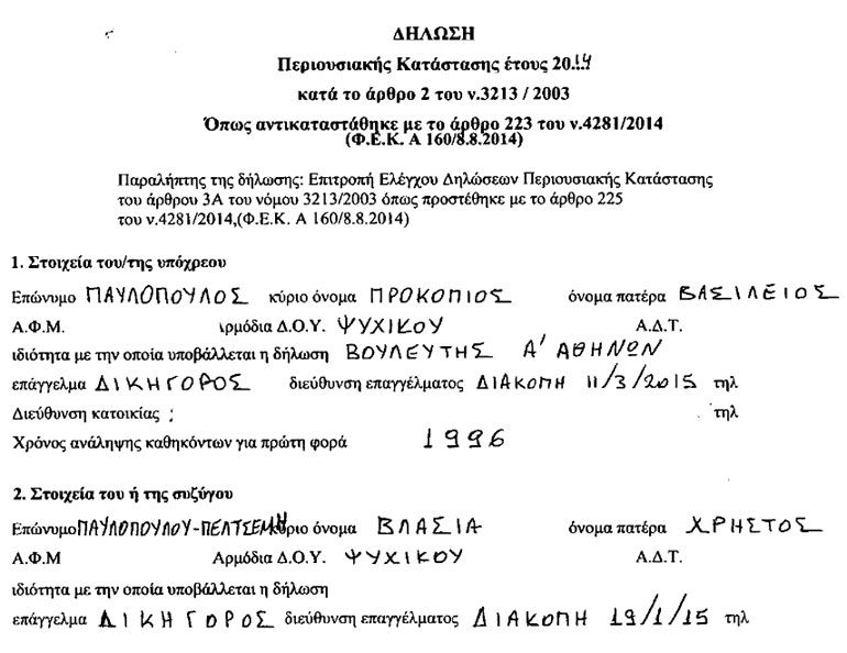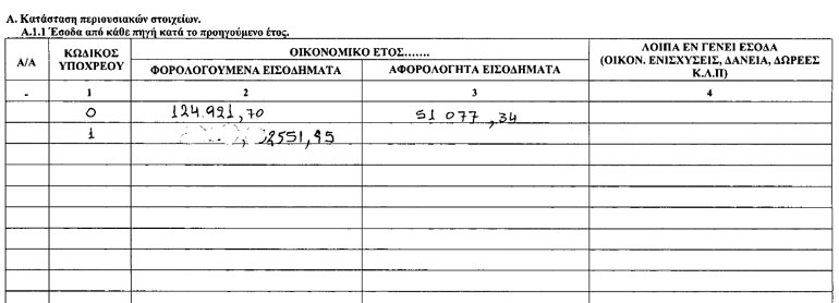 Επίσης, για την ίδια χρήση δηλώνει 21.083,71 λοιπά έσοδα και η σύζυγός του, Βλασία, 9.513,80 ευρώ.